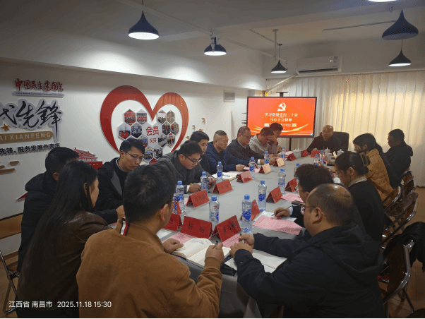 11 月 18 日,民建江西中医药大学委员会在会员之家召开中共二十届四中全会精神专题学习会,深入学习领会全会精神实质与实践要求。民建江西省委会副主委、江西农业大学副校长刘木华,民建江西省委会组织部部长、一级调研员廖雷,民建江西省委会办公室一级主任科员岳莉斯应邀出席会议,委员会全体成员参加学习。