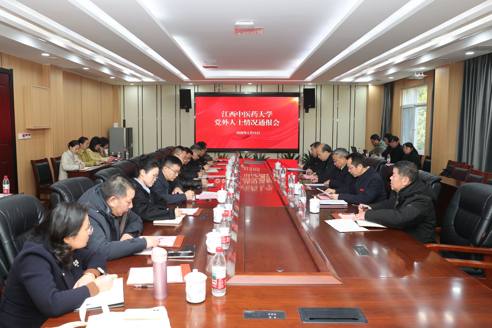 为深入贯彻落实新时代党的统一战线工作要求,1月15日上午,学校党委在行政楼三楼大会议室召开党外人士情况通报会。学校党委书记黄加文出席会议并讲话,党委副书记章德林主持会议,副校长陈焕文,党委委员、统战部部长薛铁瑛,党委委员、组织部部长周小青及各民主党派、无党派主要负责人及骨干成员参加会议。